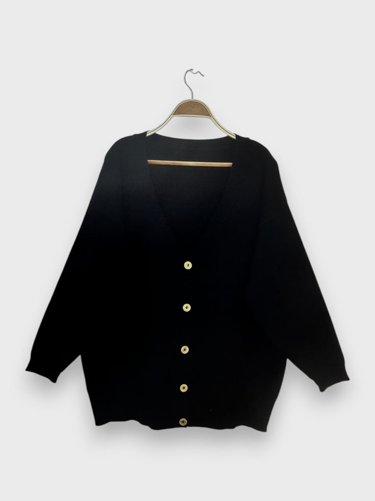De bremer doble hilo, básico, liso, tipo morley con escote V y botones, oversize.