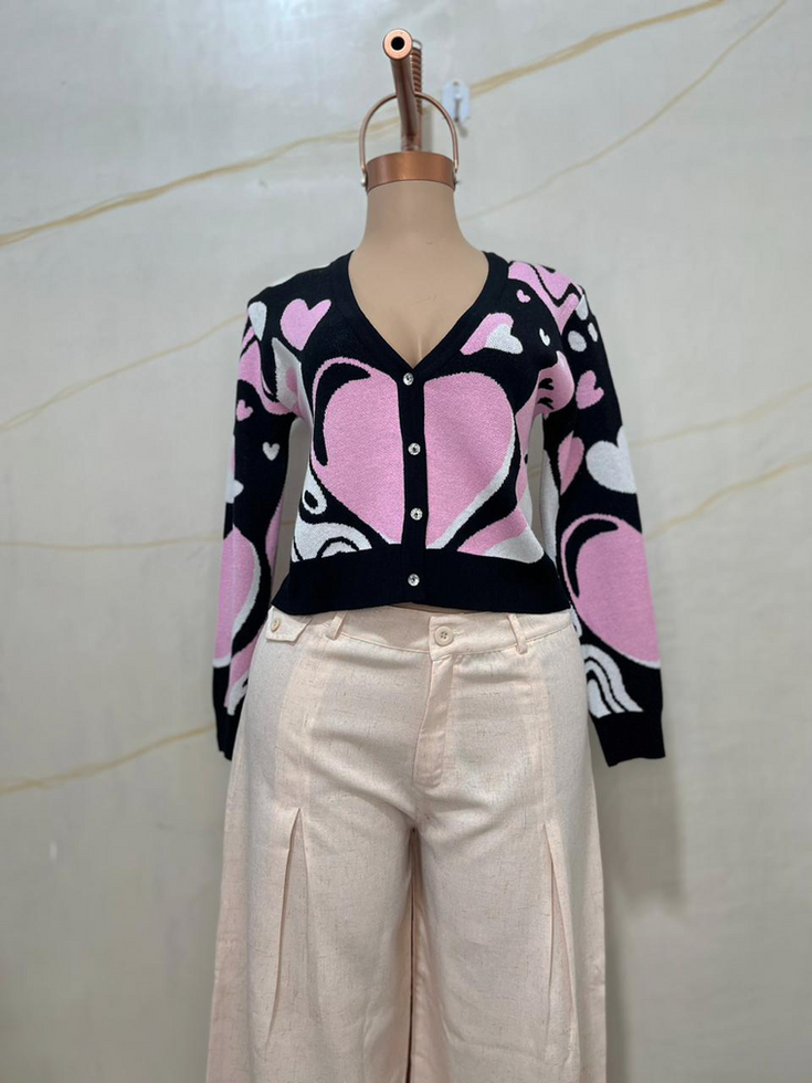 Cárdigan de doble lycra con diseñode corazones, botones de cristales en su parte frontal