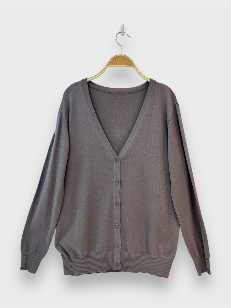 Cardigan de lycra. Ancho con cartera de botones a color y escote en V.