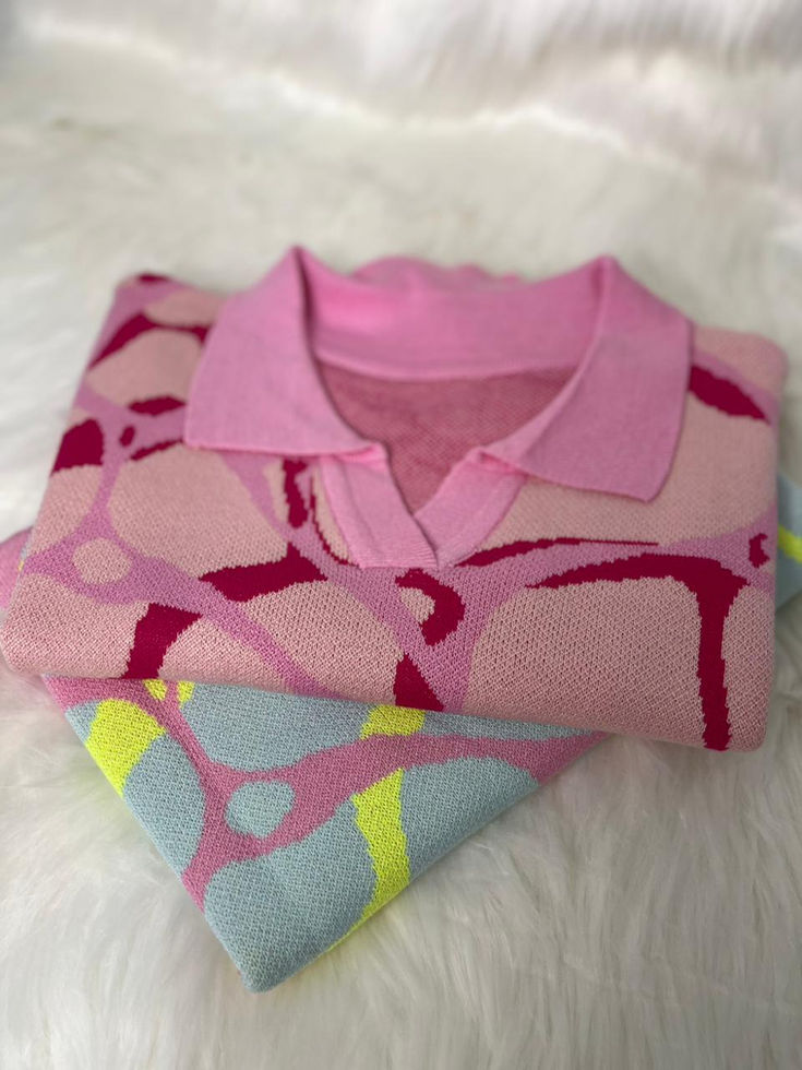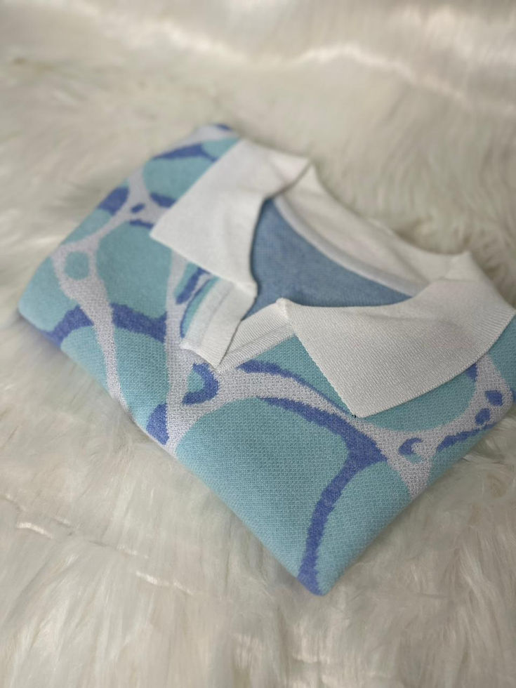 Chomba corta de lycra doble hilo. Con cuello tipo chomba, y estampa tipo agua.