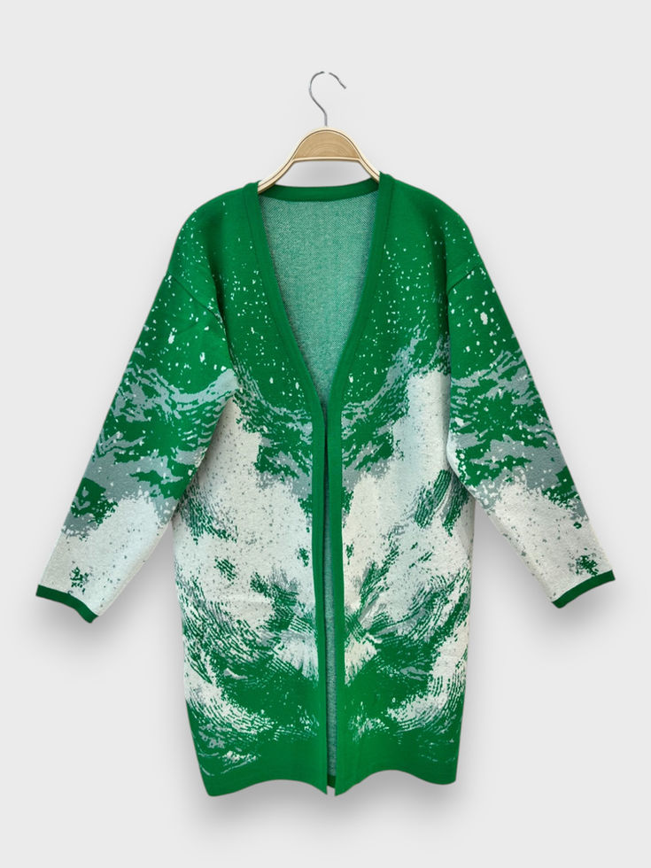 Saco de bremer doble hilo. De calce recto con diseño de olas abstracto. Largo hasta media pierna.