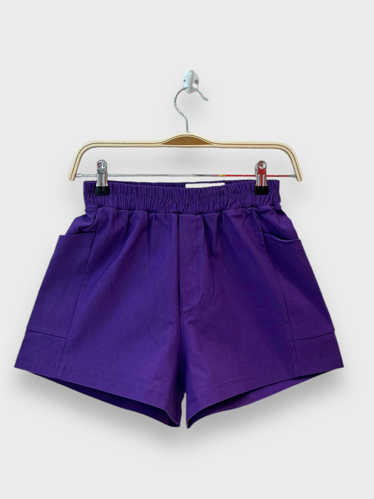 Short de bengalina. Con cintura elástica, tipo boxer, y bolsillos en los costados.