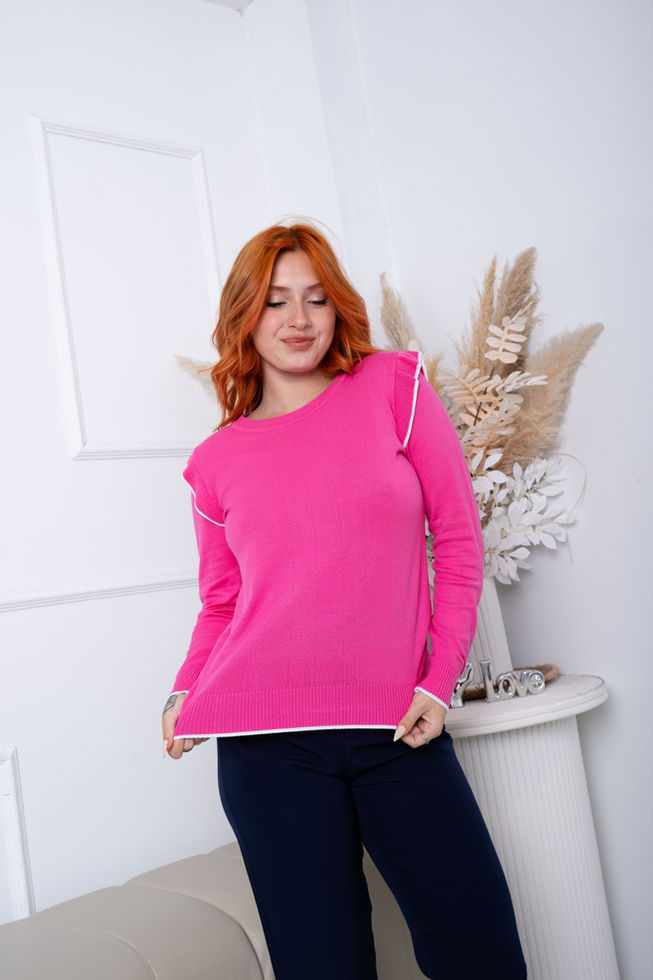 De hilo lycra, con volados en hombreras y terminaciones de color.