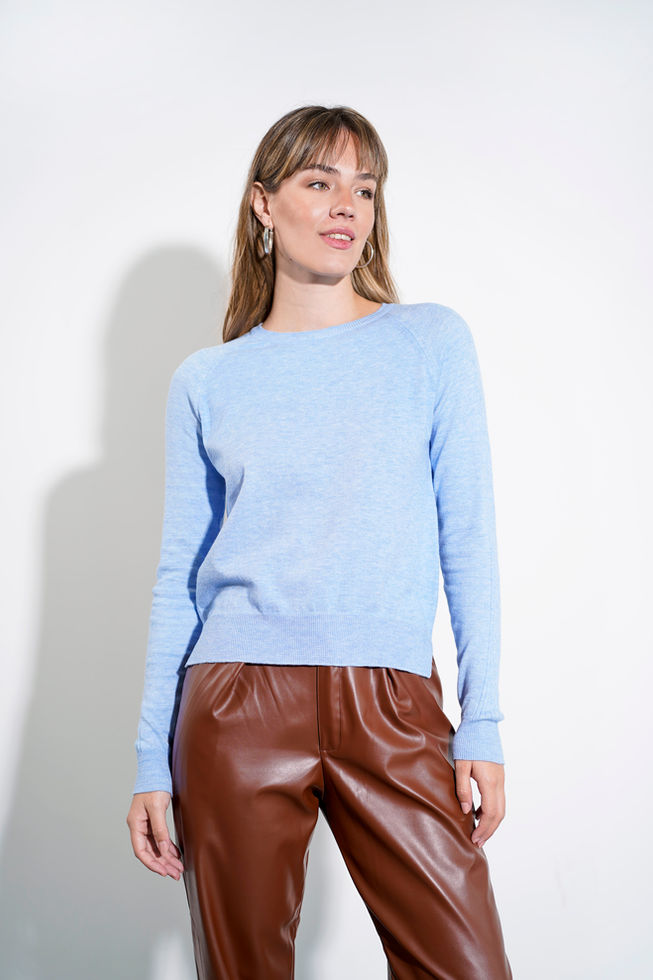 Sweater Sara de bremer o de lycra, básico, liso con detalle en las mangas y abertura lateral.